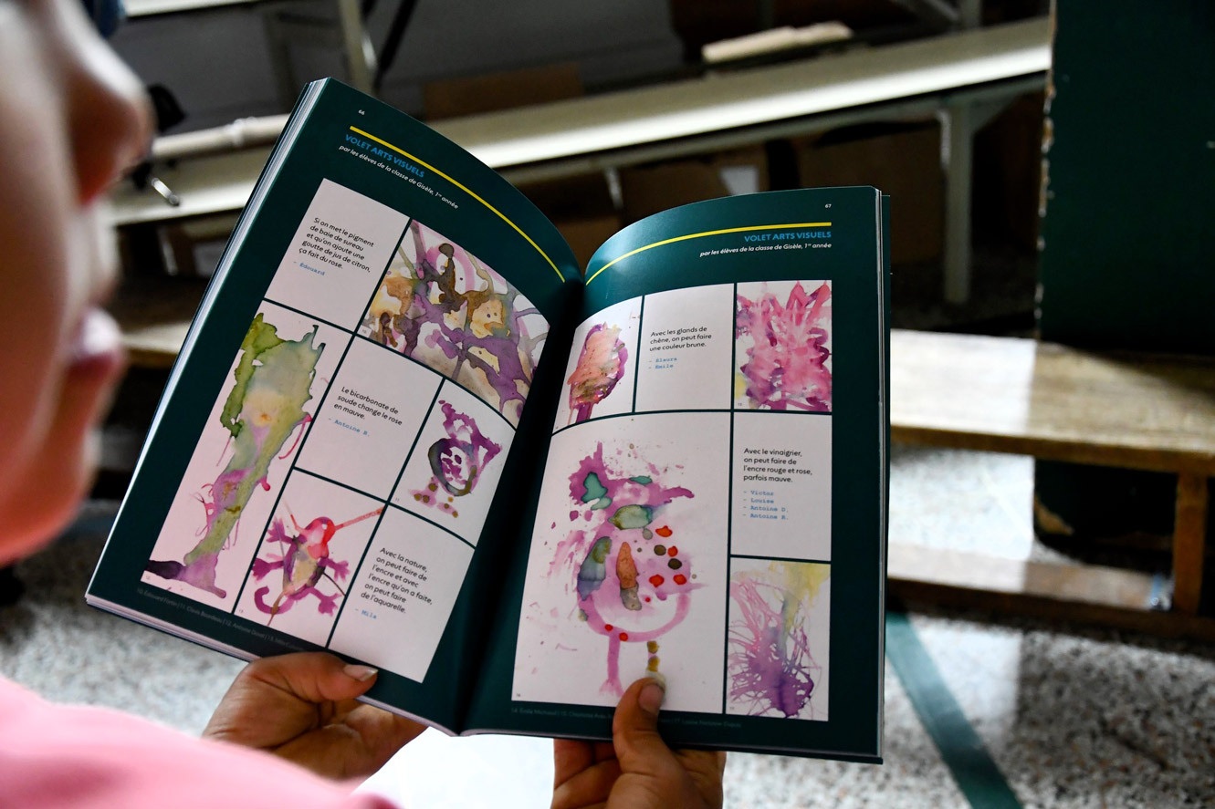 Illustration d’un livre par tous les élèves faits à partir de dessin à l’encres végétales